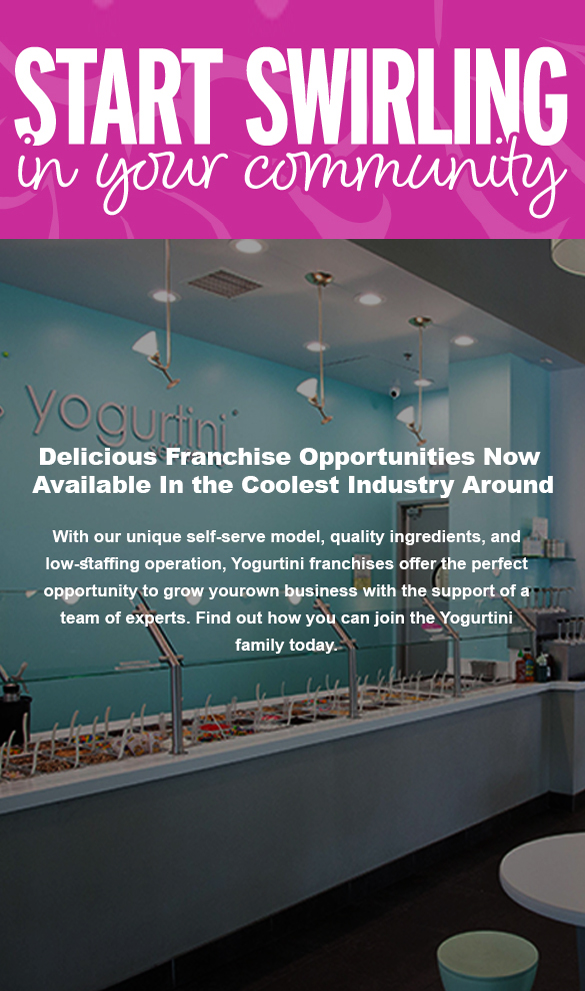 Establishing a small business on your own can be tough. This is why many choose to go with an established brand. At Yogurtini, we have an incredible culture that focuses on our franchisees’ success. We have developed a system that will help you jump-start your business and provide you with a competitive advantage in your market. As a franchisee, you will have access to all of our support systems and expertise as well as our trade secrets and unique strategies.